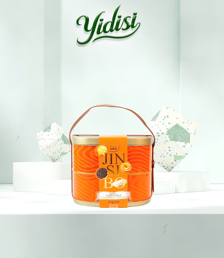Bánh Quy Hộp Thiếc 2 Tầng JINSIBO 568G (Đỏ + Cam):