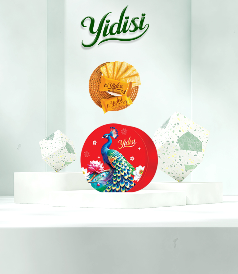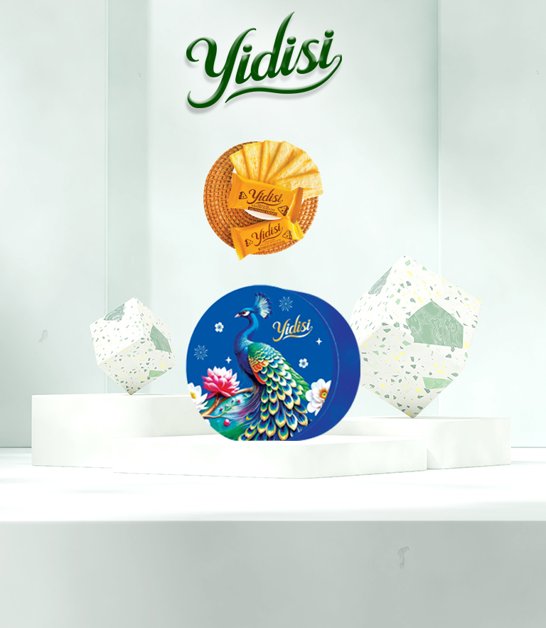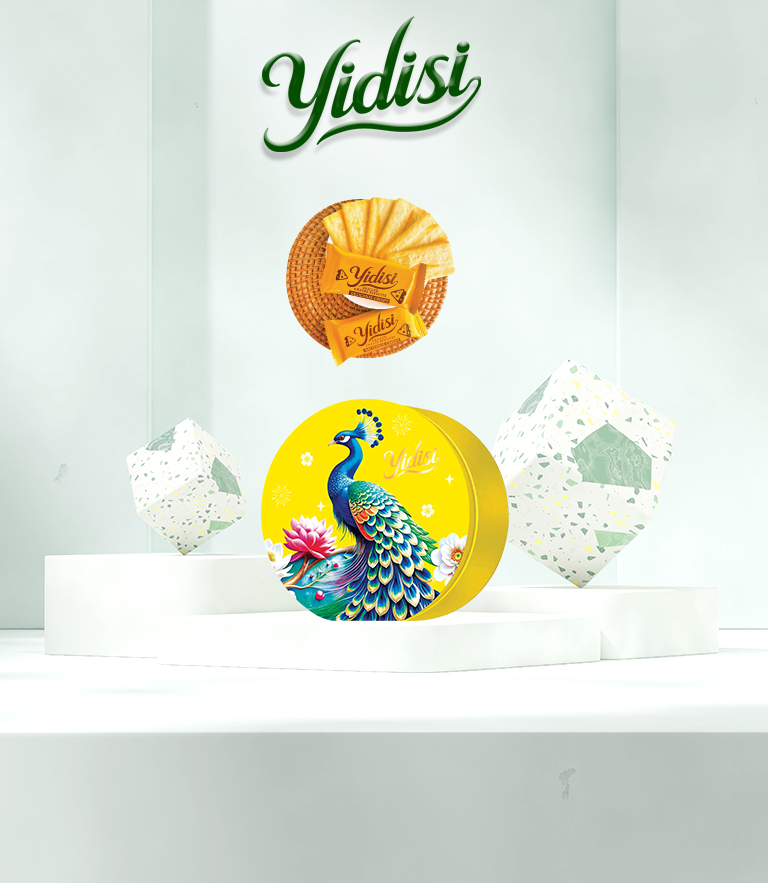 Đây là một hộp bánh quy YIDISI 128G nhỏ gọn, cao cấp, với bao bì thiếc hình tròn in hình con công nổi bật và chứa các lát bánh quy pho mai nướng đá, rất thích hợp làm quà tặng hoặc thưởng thức, sản phẩm không thể thiếu trên mỗi giỏ quà, biếu, tặng.
