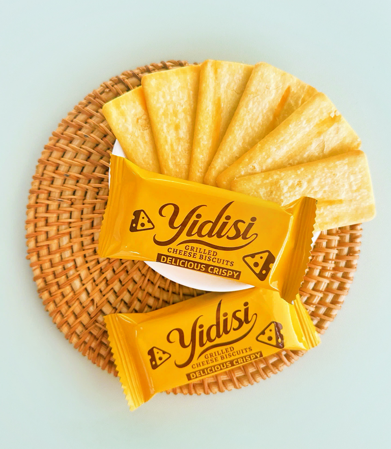 Chiếc bánh quy Yidisi vị Phô mai này được thiết kế theo phong cách bánh quy giòn truyền thống, nhưng có những điểm nhấn đặc biệt: