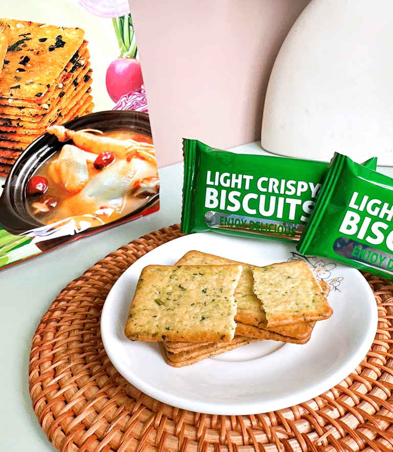 Bất kể hương vị nào, dòng bánh này đều giữ nguyên kết cấu "Light Crispy Biscuits" (Bánh quy giòn nhẹ):