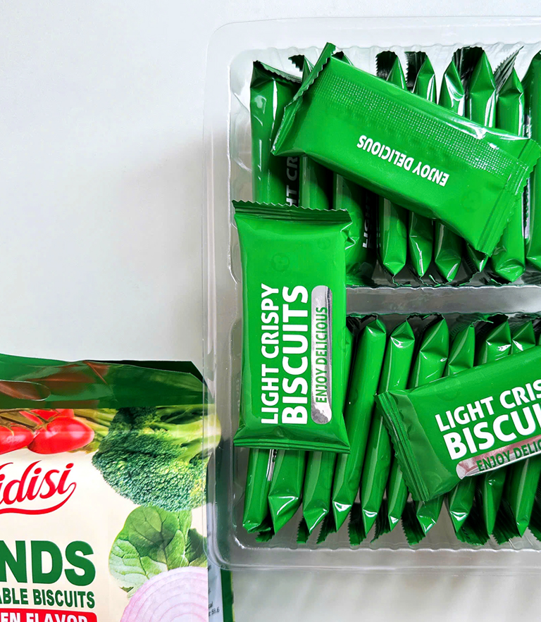 Dòng sản phẩm Bánh quy mỏng Rau củ Yidisi là sự kết hợp độc đáo giữa sự giòn tan của bánh quy và hương vị đậm đà từ các nguyên liệu mặn, được đóng gói trong các túi nhỏ tiện lợi, thích hợp cho món ăn vặt nhẹ nhàng.