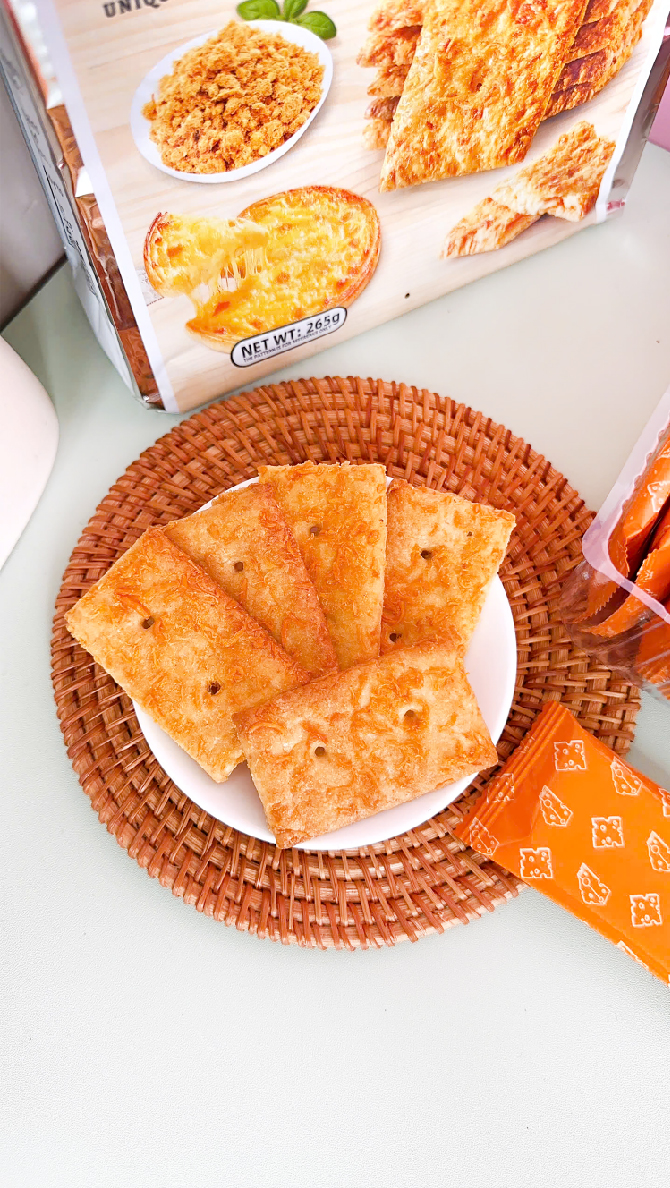 Tiện lợi: Mỗi túi 265g thường bao gồm các gói nhỏ riêng lẻ bên trong, giúp bảo quản độ giòn lâu hơn và rất thuận tiện để mang đi làm, đi học, hoặc dùng tiếp đãi khách.