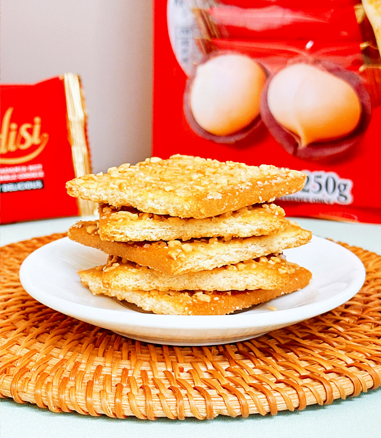Bánh được mô tả "Nutty and Crispy" (Thơm vị hạt và Giòn tan).