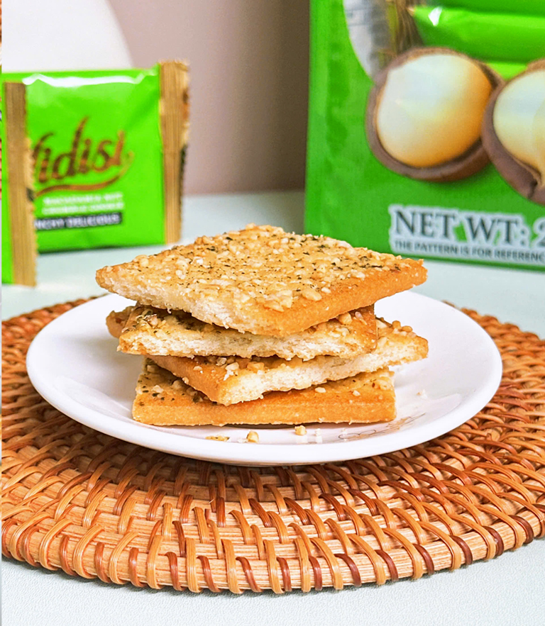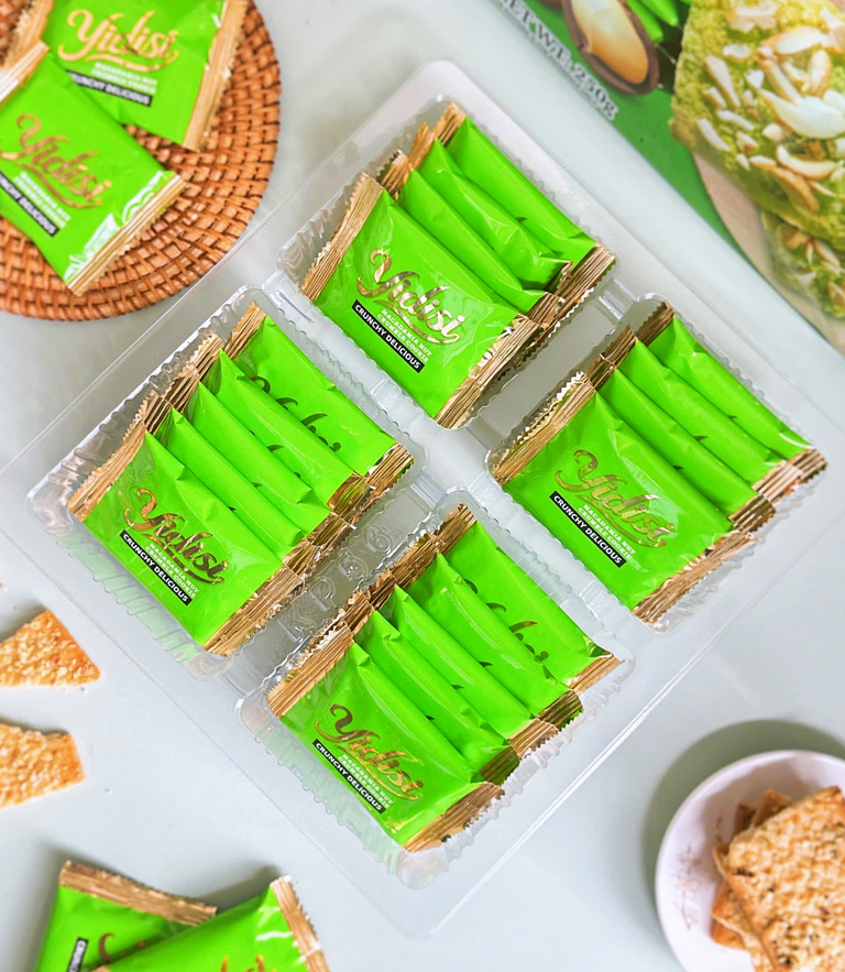 Bánh quy giòn YIDISI có các thành phần chính như phô mai, đậu phộng, matcha và trứng/hạt.