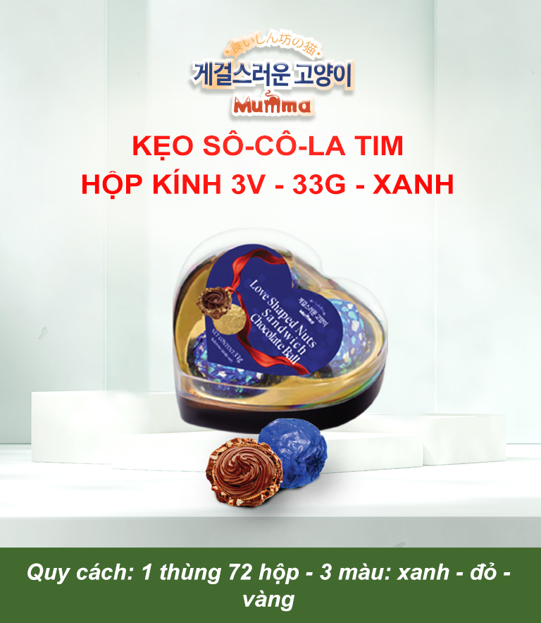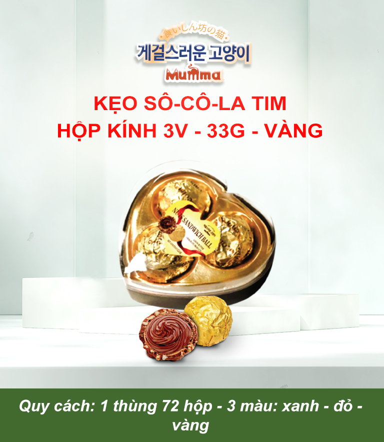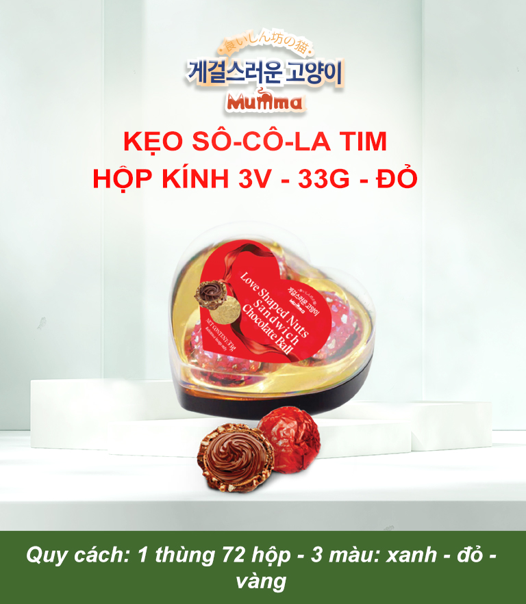 KẸO SOCOLA TIM HỘP KÍNH 3 VIÊN(33G)