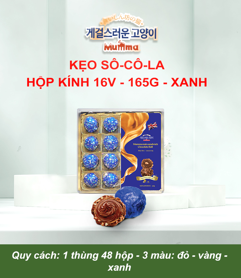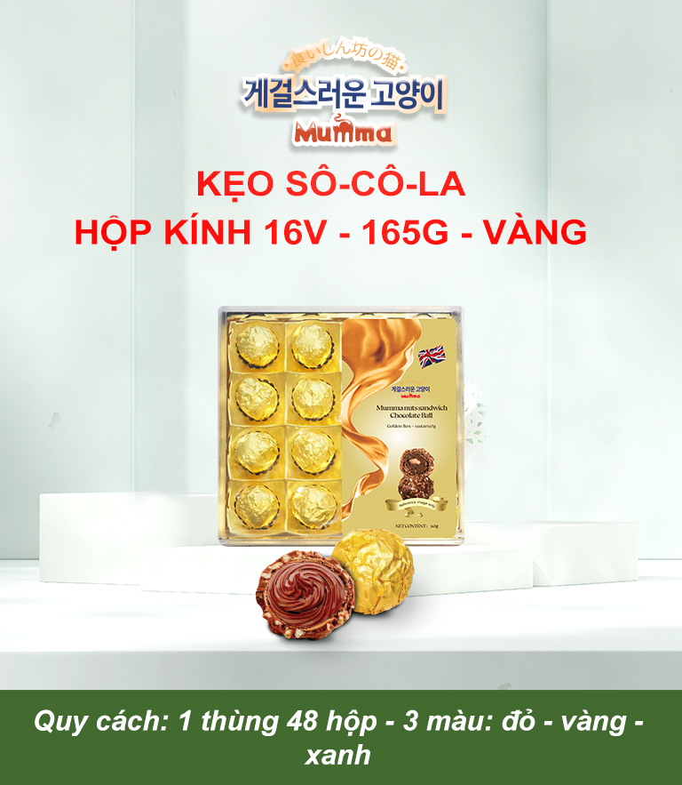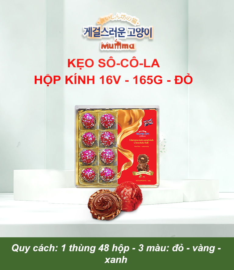 - Tên sản phẩm: KẸO SOCOLA VUÔNG HỘP KÍNH 16 VIÊN ( 165G)